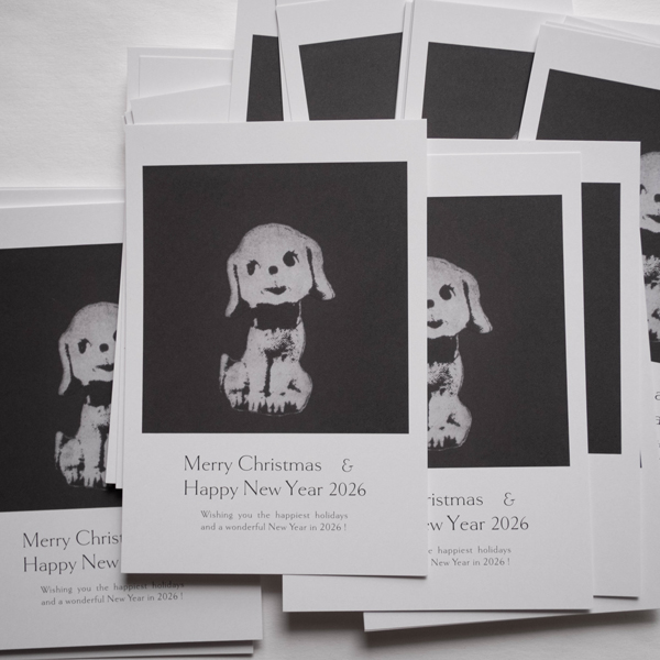 すっかり気に入って、今年のクリスマスカードはこの作品で作りました。背景がここまで真っ黒だと自宅のプリンターではきれいに出ないので、初めて印刷所にお願いしました。なんて素晴らしい仕上がり! 嬉しくなって12月入ってすぐ方々送ってしまい、やたら早い年末のご挨拶となってしまいました。お許しください。