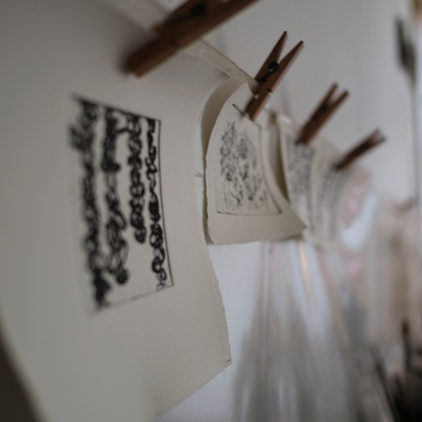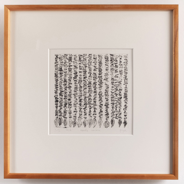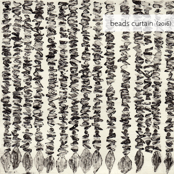 2016年に作って今も気に入っている 'beads curtain' 。ビーズのカーテンです。これがどうやって作ったのかいまいち思い出せなくて、自分の作品を研究する変な感じになっています。版はエディション分刷り終わると裏を使ってしまったりしてないものも多いのですが、これは定期的に気になって引っ張り出してくるので残っています。今の私は絶対にしないであろう浅い腐食。