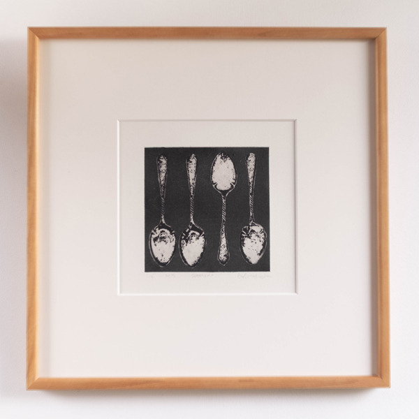 昨年から登場し始めた銀のスプーン。紙版画で並べてみました。