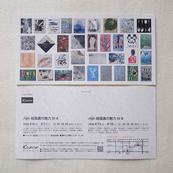 ギャラリーカノン「版種別 紙版画の魅力Ⅳ-A,B」展のお知らせです。