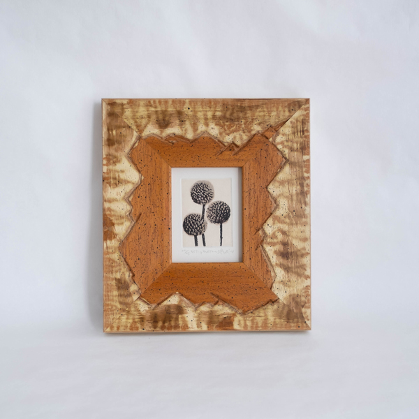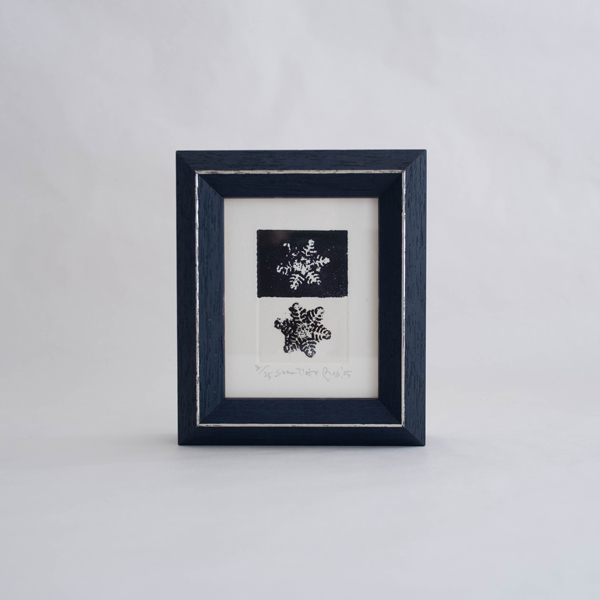また、今回出品するために新しい小さな版画も一点作りました。おそらく二度と手に入らないであろう額に合わせて作り、サインの入れ方なども変則的にしてみました。